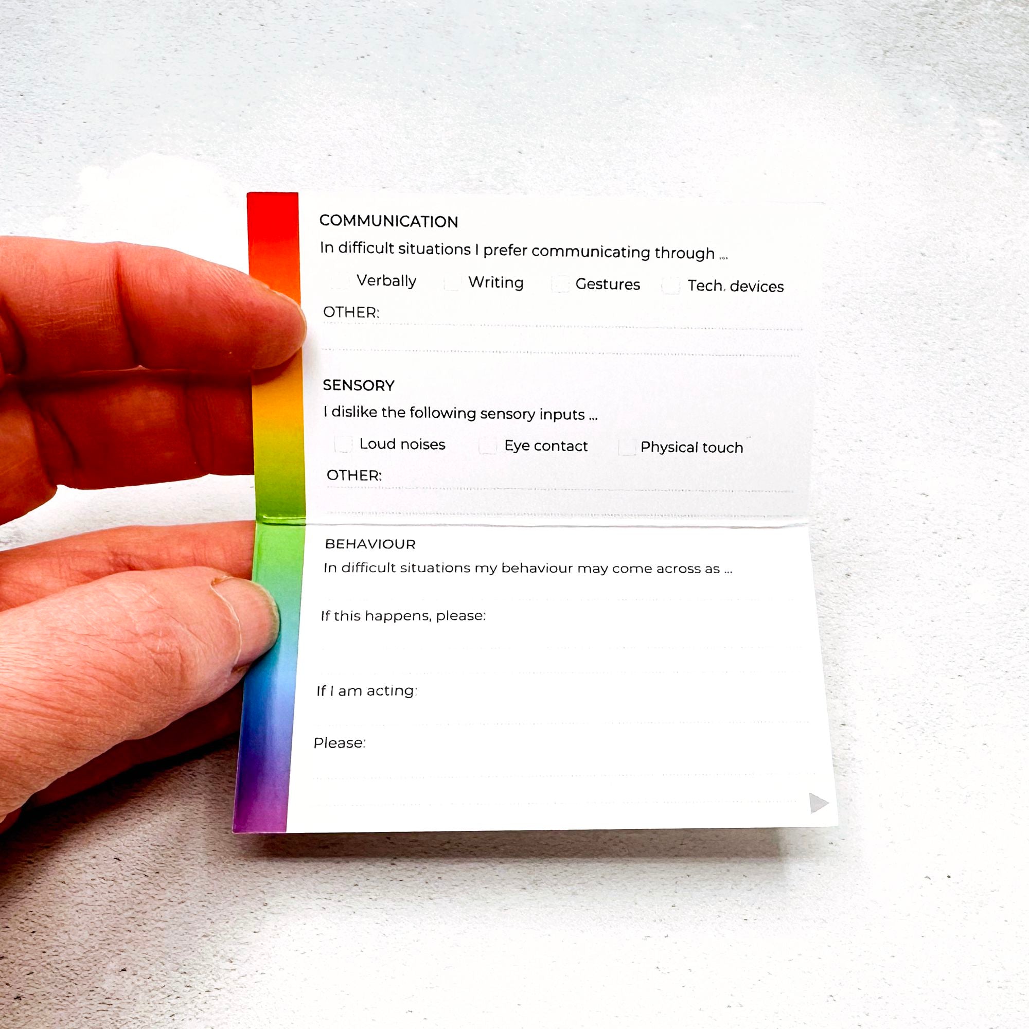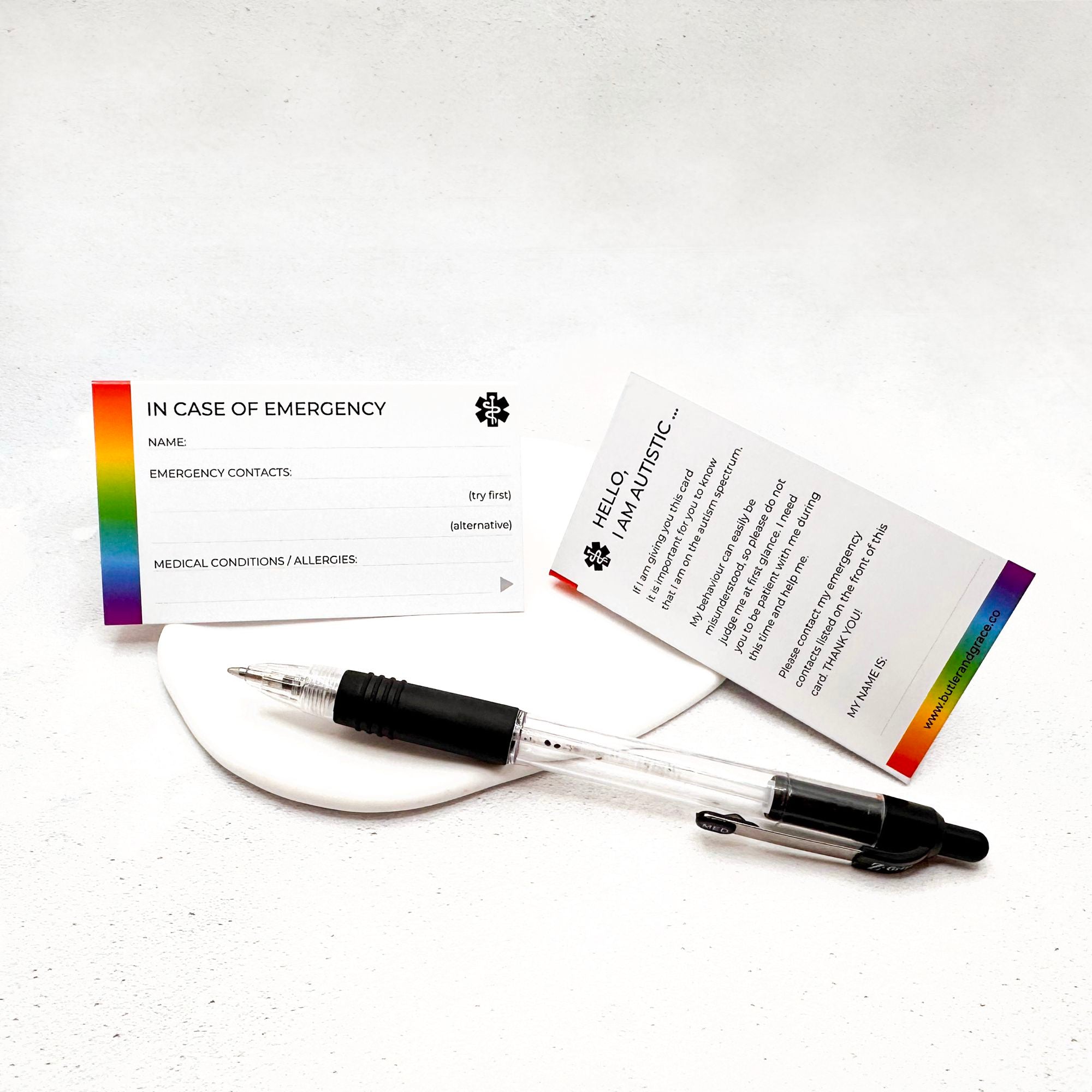 Essential for anyone on the autism spectrum or caregivers, these wallet cards provide quick access to vital information during emergencies and daily life.