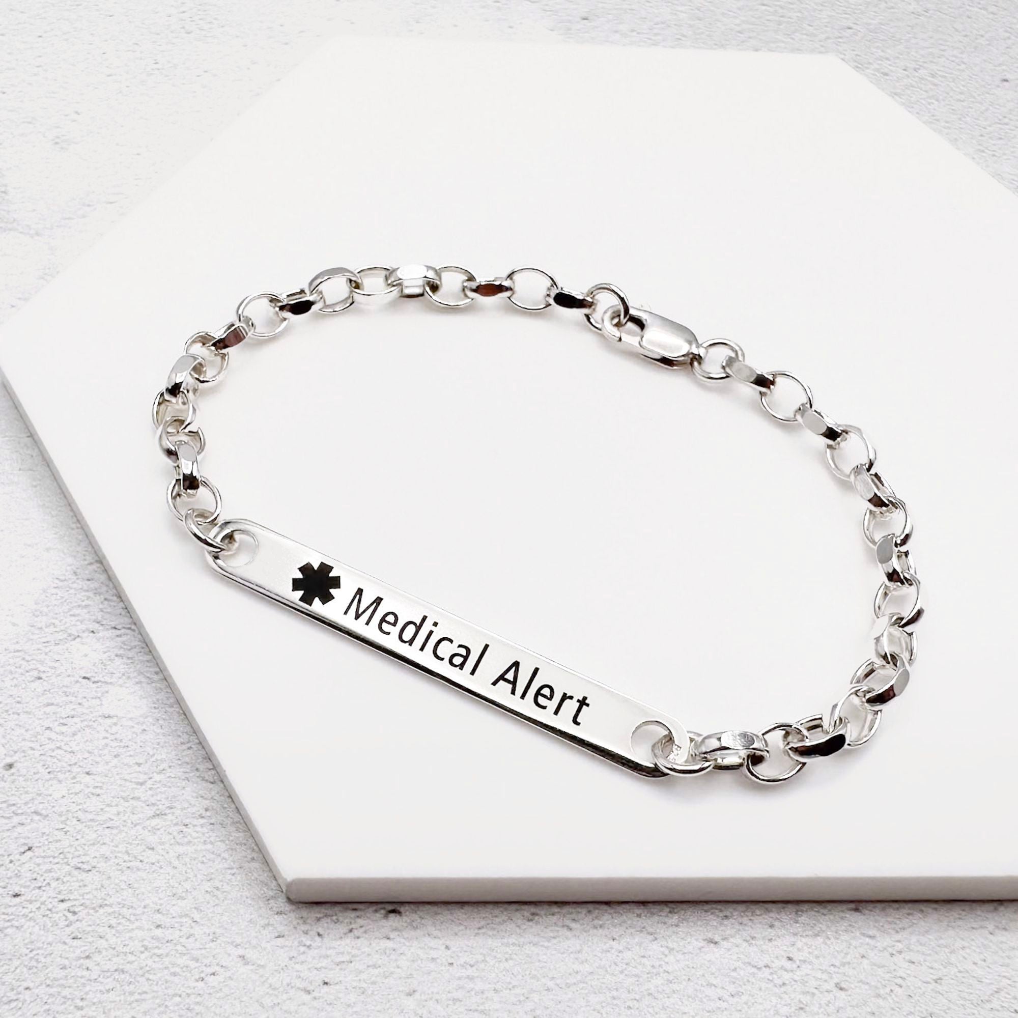 Precision crafted, this silver medical alert bracelet is the perfect gift for you or someone you love.