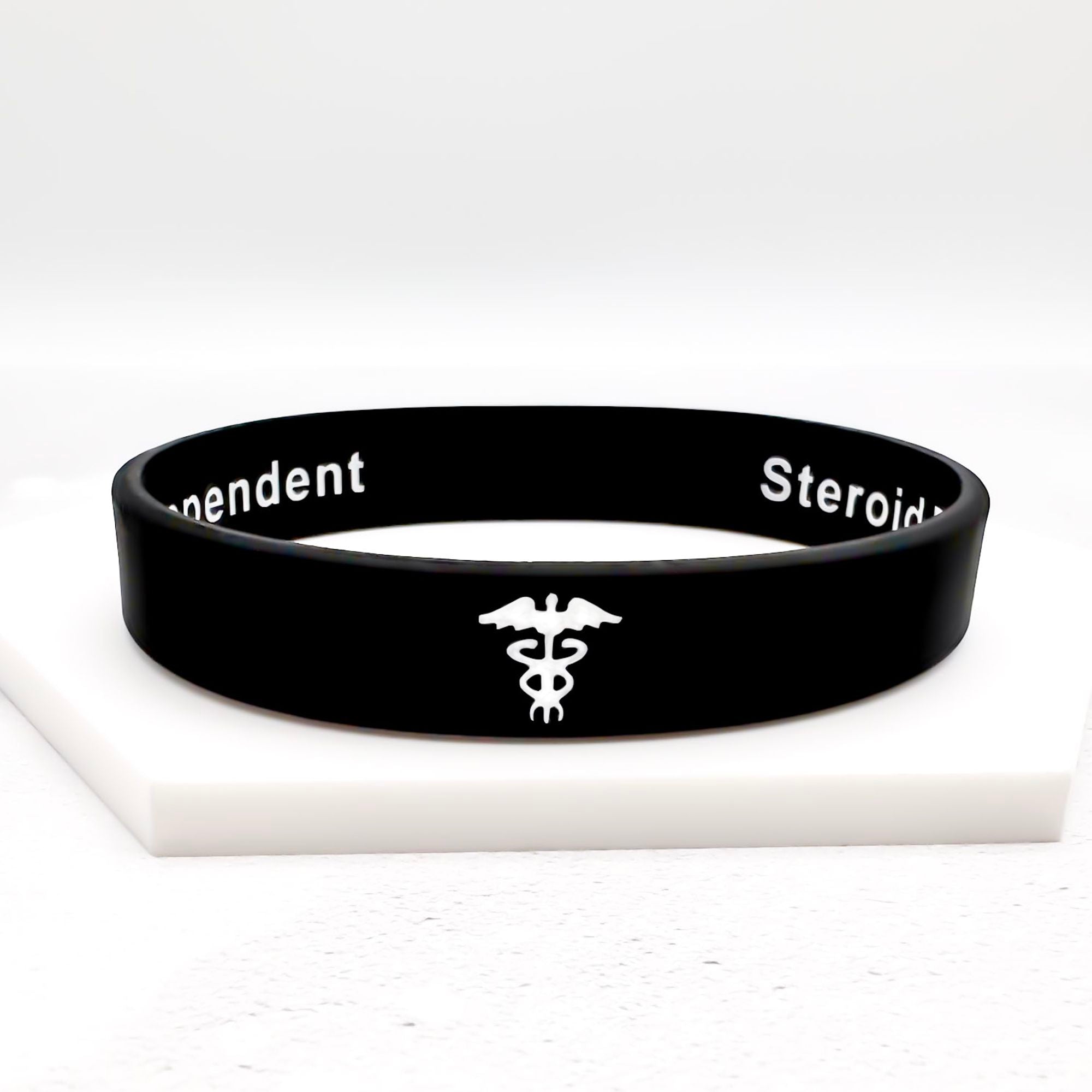 Order your steroid dependent medical bracelet today! It's 100% silicone, and latex-free!