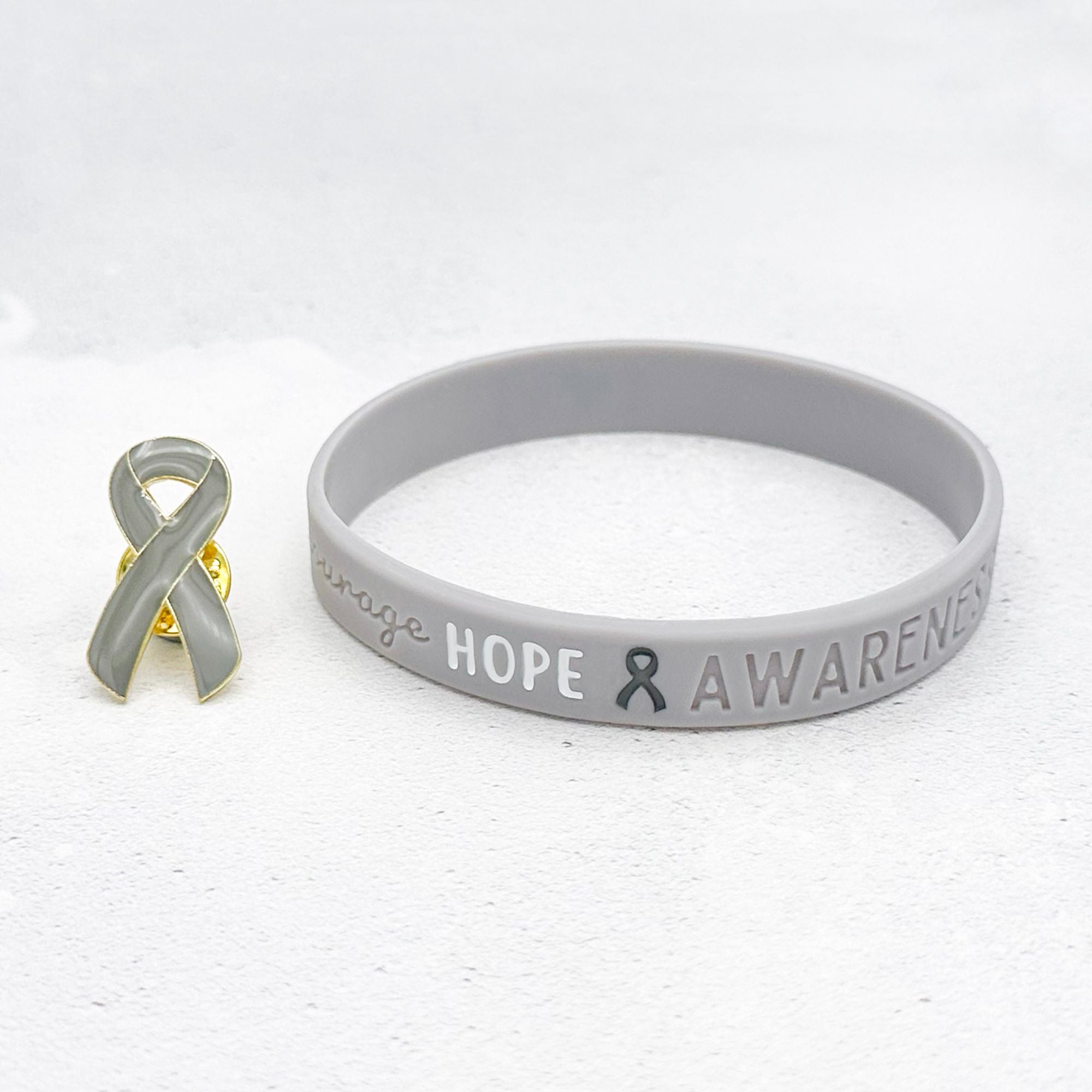 Show your support and honour loved ones with this meaningful grey awareness ribbon wristband.