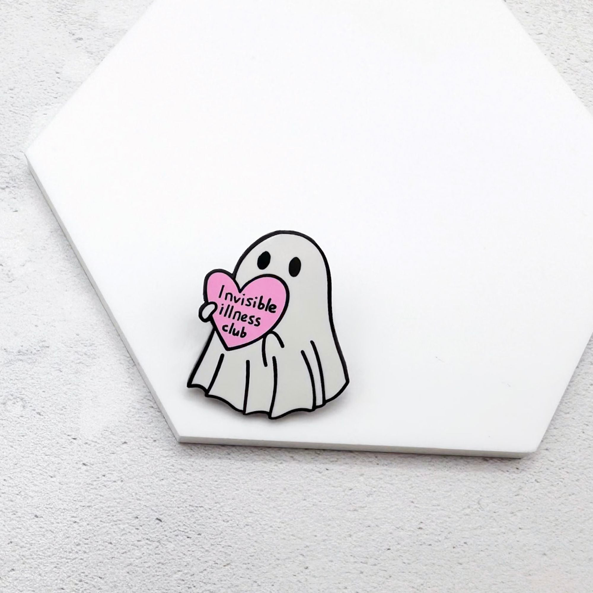 • Ghost design with pink heart and “Invisible Illness Club” text