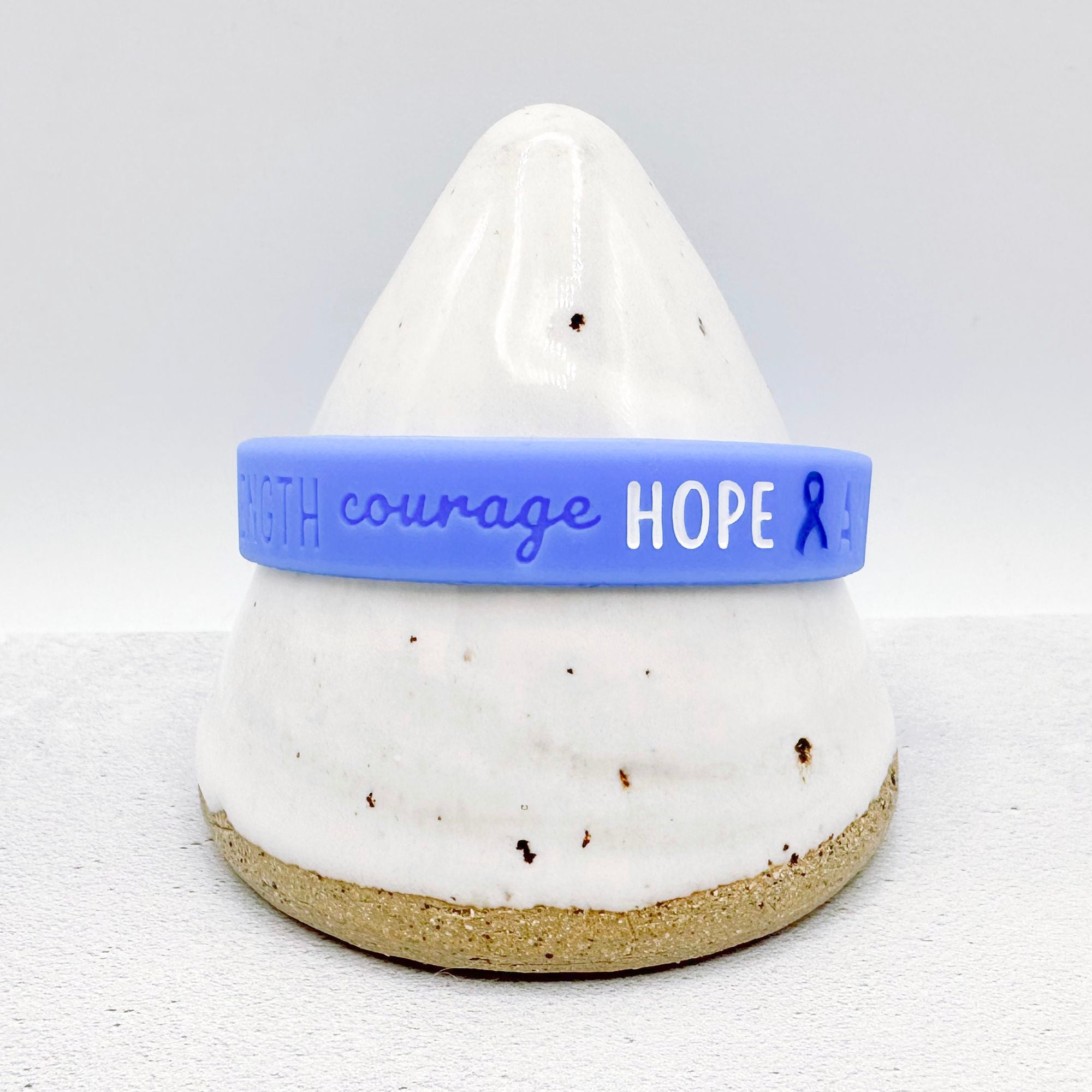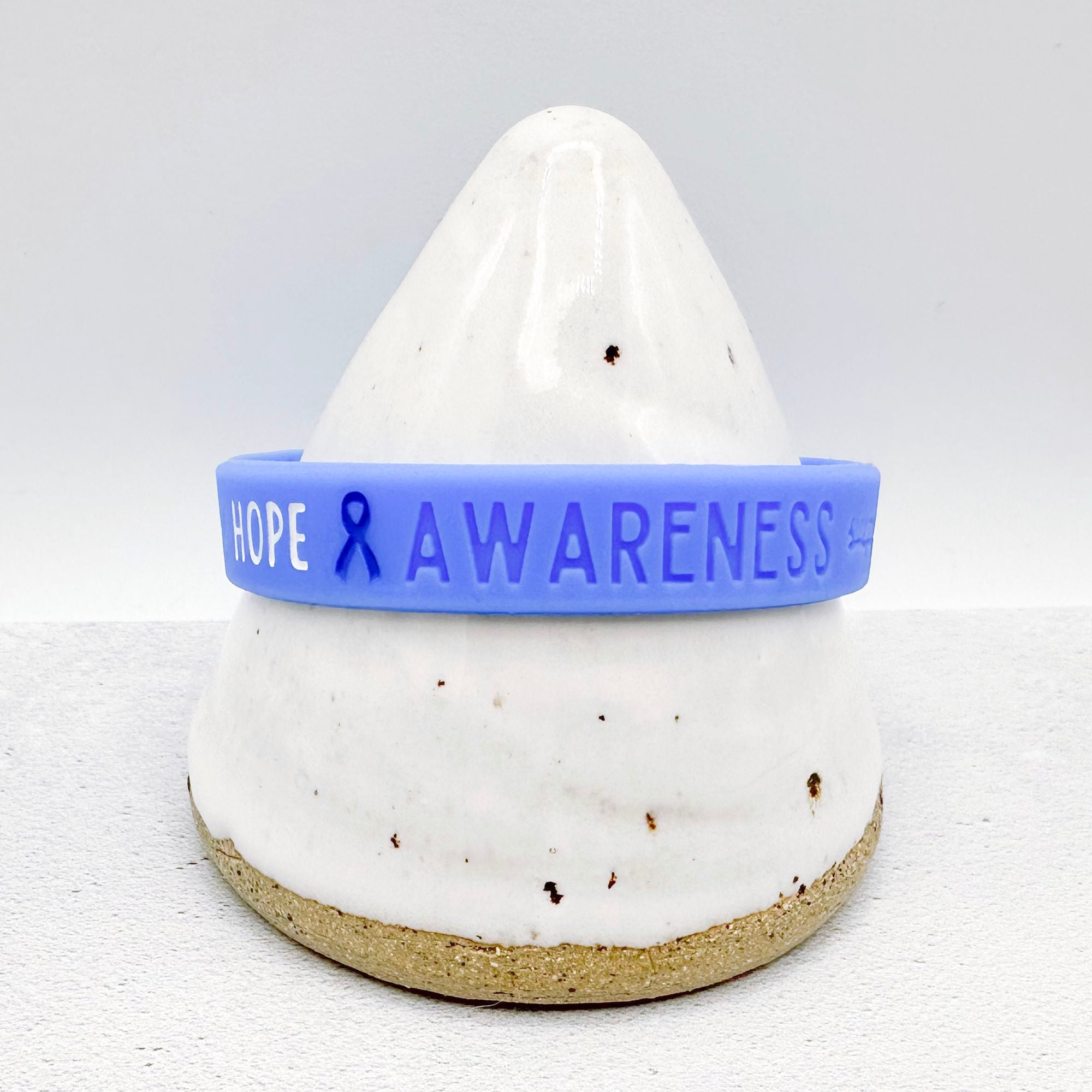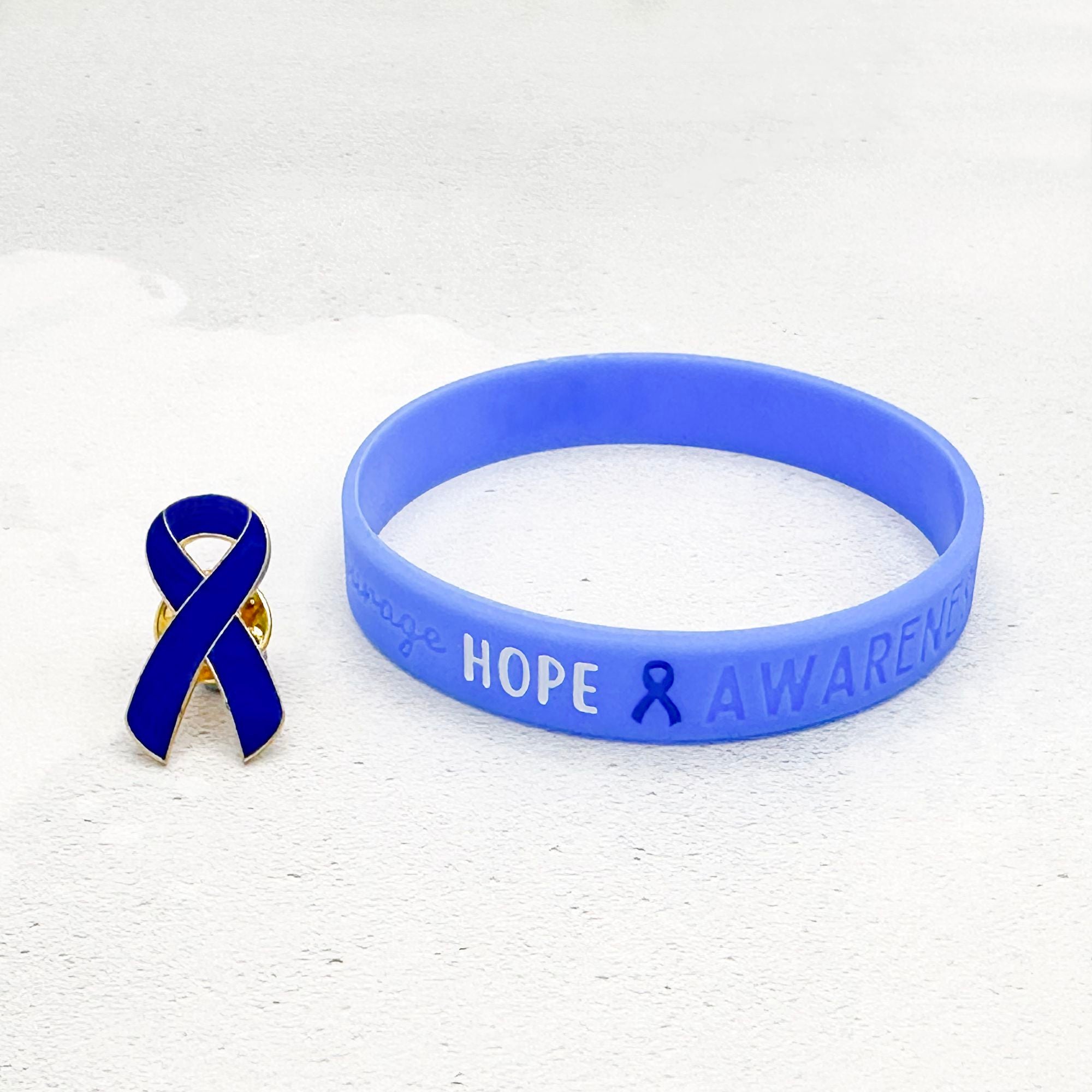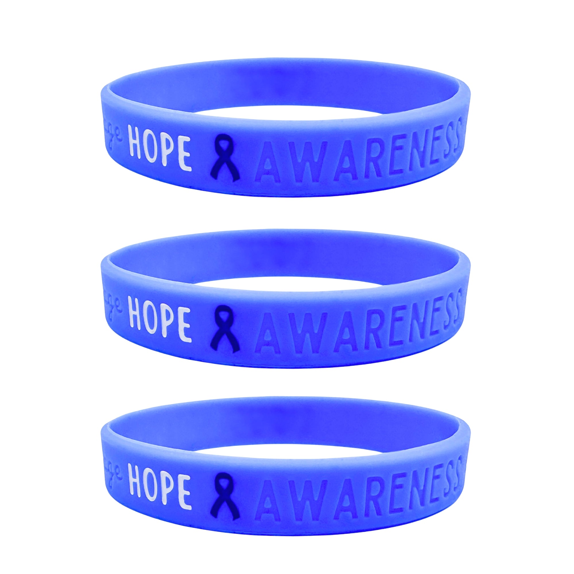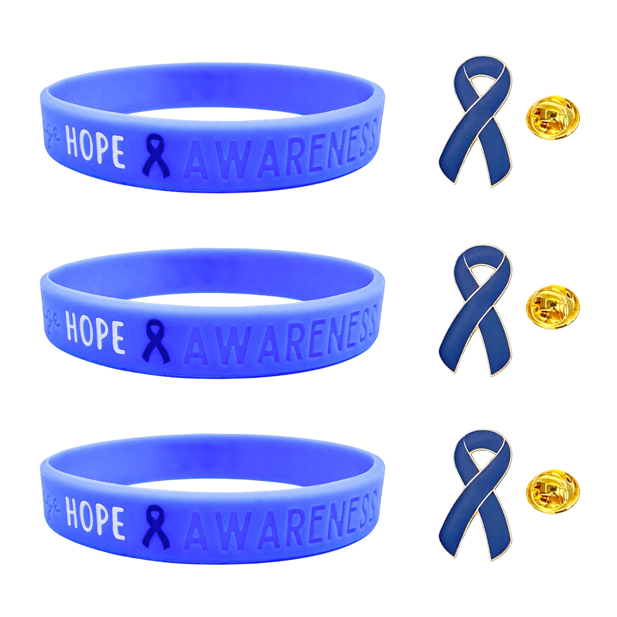 Show your support and honour loved ones with this meaningful blue awareness ribbon wristband.
