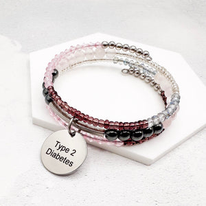 This arthritis bracelet for women features pink, brown, and silver-toned beads strung on flexible memory wire, and a stainless steel charm for your medical conditions, allergies, or emergency contact details. Made from high-quality stainless steel, this arthritis bracelet for women offers a beautiful and durable finish.