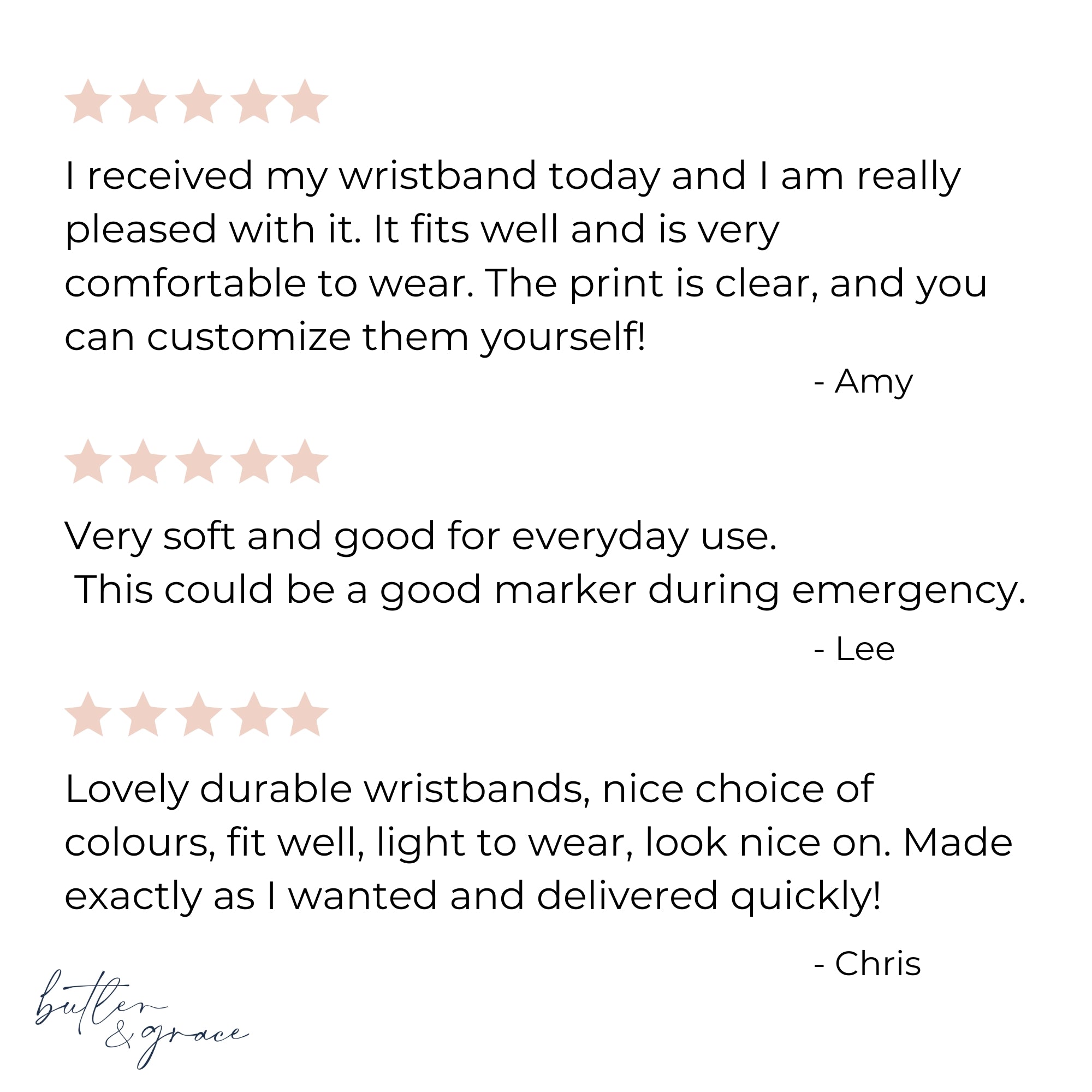Gently clean your wristband with water and dry it with a soft cloth to keep it looking its best. Remember, silicone is a soft material, so it won't last as long as a metal bracelet. Overtime, the coloured layer will fade, making the engraving harder to read. Generally, it can last anywhere from 2 weeks to a year, depending on how often it is worn. To extend the life of your wristband, avoid wearing it in bed or in the shower.