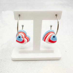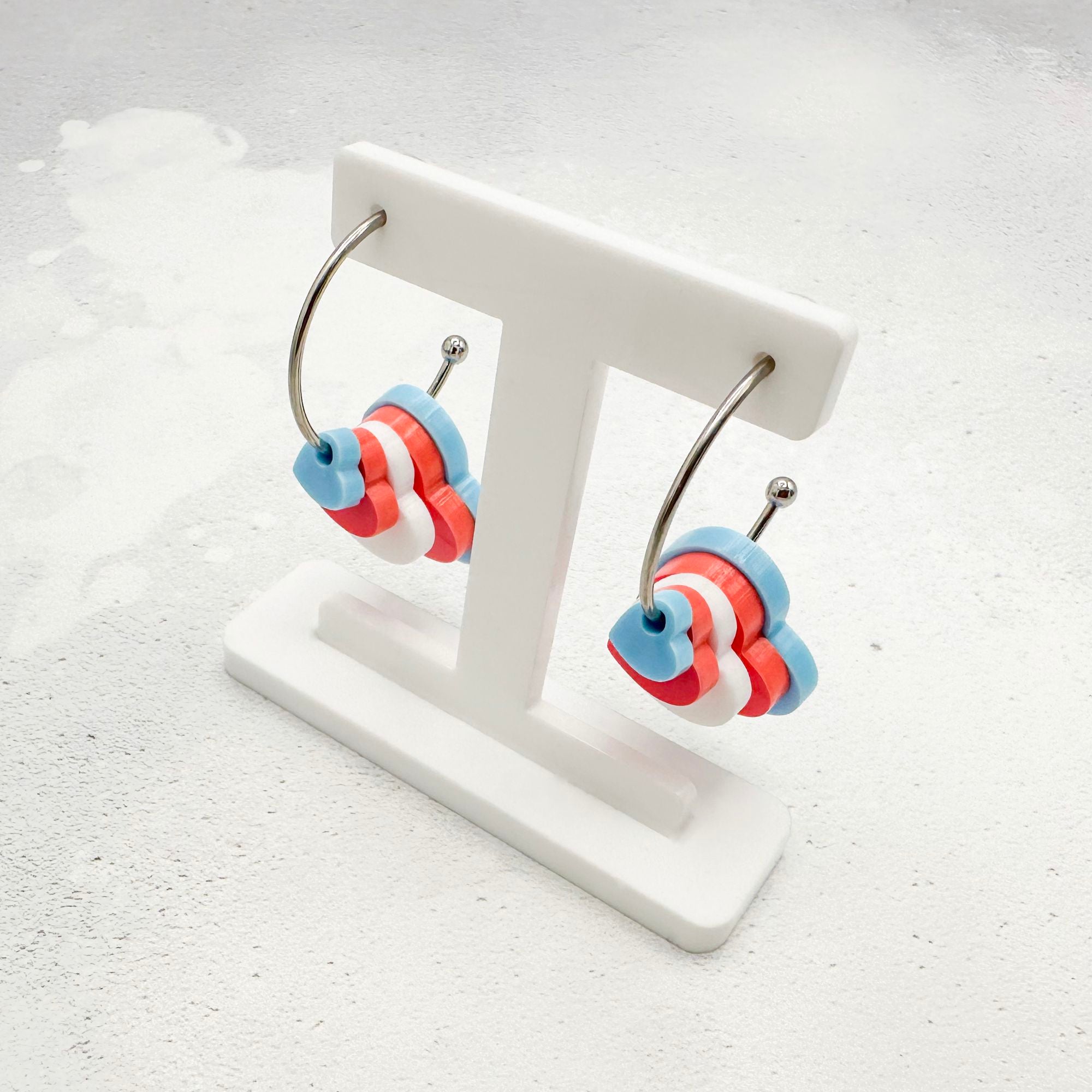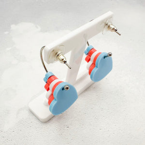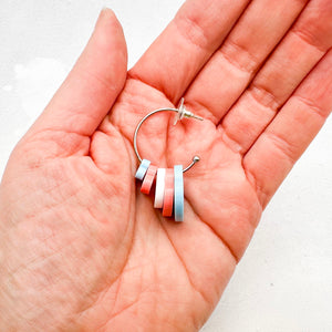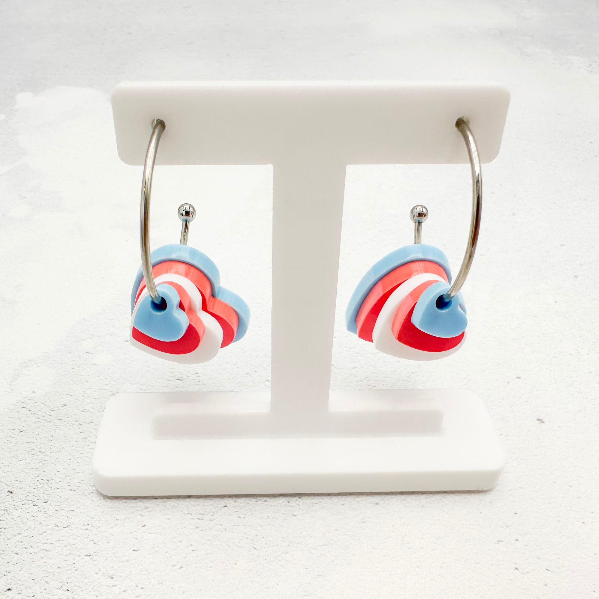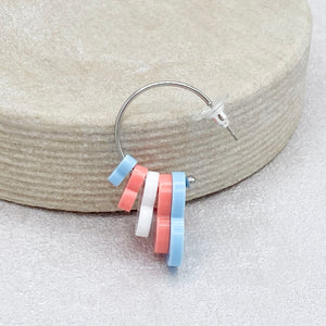 Celebrate your identity with these LGBT heart earrings. Crafted from laser-cut acrylic in the transgender colours of blue, pink, and white, the charming heart shapes hang delicately from stainless steel hoops.