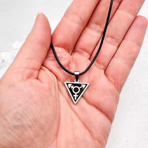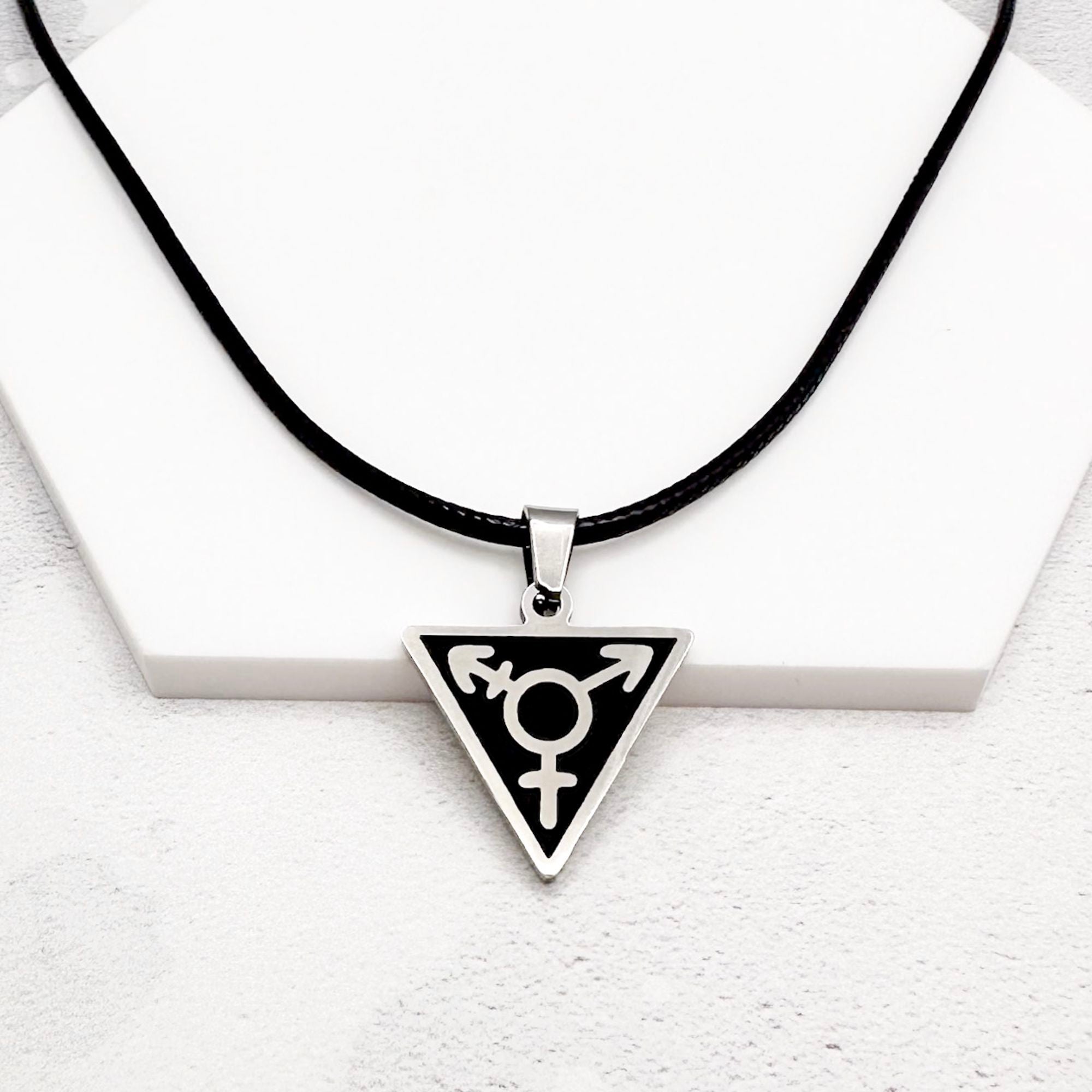 This necklace features a stainless steel transgender pendant with black enamel on black waxed cotton cord. This transgender necklace is the perfect gift for you or someone you love.