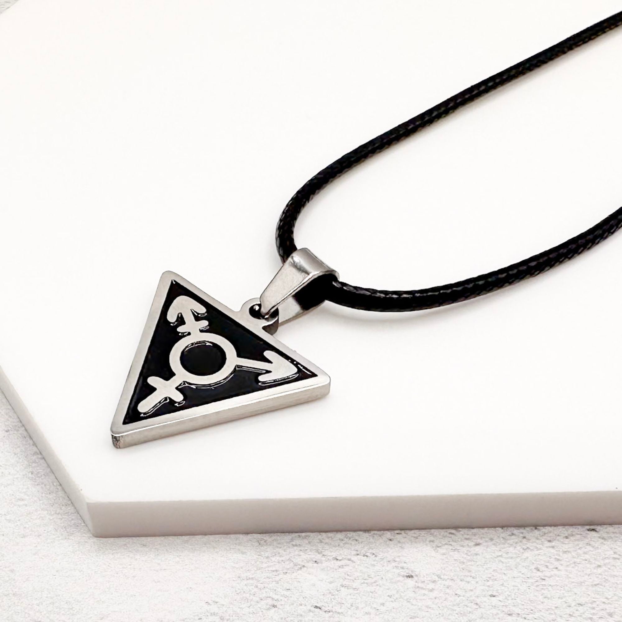 This transgender necklace combines the male and female symbols, creating a new emblem to represent transgender and genderqueer individuals. Show your pride and support for the lgbt+ community with this necklace.